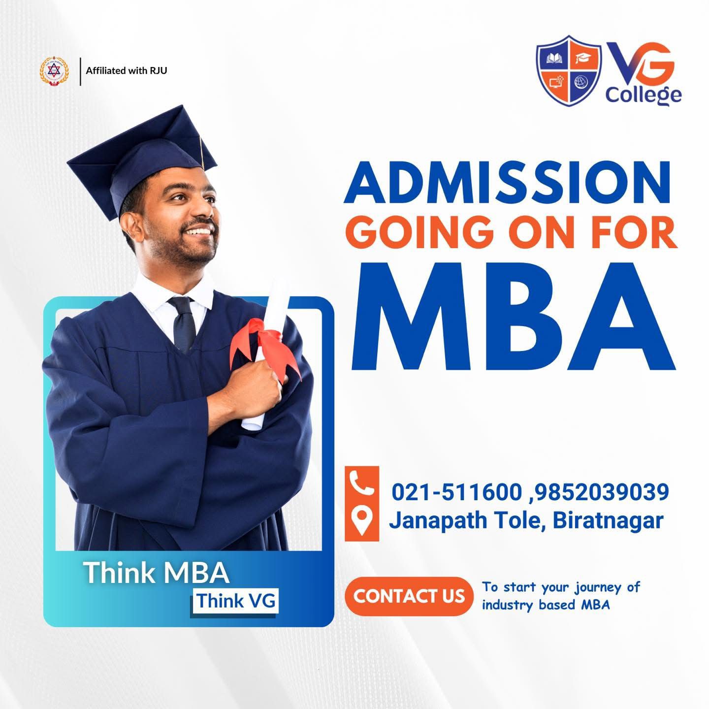 VG College is a certified institute affiliated with RJU, ensuring quality education and recognized programs.